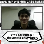 さらに、番組後半では「B.LEAGUE Monthly MVP by 日本郵便」の受賞選手を発表。見事2月度のMVPに輝いた川崎ブレイブサンダースの藤井祐眞がリモート出演した。