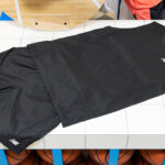 今回、『New Balance Basketball 2025年春夏アパレルコレクション』を実際に手にしてチェックしようとバスケットボールキング編集部がお邪魔したのは、スーパースポーツゼビオ東京御茶ノ水本店2階にあるニューバランス特設コーナー。フロアに入り最初に目に入ってきたのが、ニューバランスのロゴが大きく配置されて、実際にバスケットボールが入っている特設のテーブルだ。シャツとパンツのコーディネートの確認もできる程よい大きさで使い勝手もいい。バスケットボールや新アイテムについて、ショップのスタッフとあれこれコミュニケーションを取るにもピッタリのスペースだ。