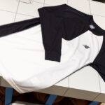 右袖がロングスリーブになったアシンメトリーニットシャツ。独特のデザインに仕上がっているが、ロングスリーブにすることで手にかかる汗を抑えることが可能。加えて、春夏にかけてエアコンの効いた体育館では冷えを緩和することもできる。