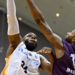 それでも、77-67と10点リードで迎えた試合終了残り2分20秒から、形勢が一転。タイムアウトが明けると、アシャオルと藤田浩司に得点を決められ、そしてウィリアムスの3ポイントで3点差に縮められる。さらにアシャオルのフリースローを経て、同残り8秒にウィリアムスの3ポイントで77-78とゲームをひっくり返される。