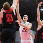第2クォーターに入ると、A東京はジャワッド・ウィリアムズのアウトサイドシュート、田中大貴の鋭いドライブで次々と加点。第1クォーターの差を一気に埋めて42-43で前半を終えた。
