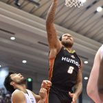 試合序盤はシュートが決まらず、開始1分51秒に木下博之がようやく初得点を記録。リードが入れ替わる拮抗した展開となったが、12-13で迎えた残り2分13秒にジーノ・ポマーレ、同30秒にもポマーレが得点を積みあげると、終了間際に合田怜が2本のフリースローを成功させた。
