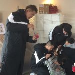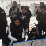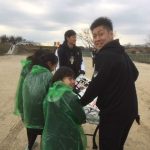 ロバート・サクレ(左)、マーク・トラソリーニ(右)の外国籍選手も笑顔で支援活動に参加