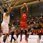 第3クォーターも依然としてスミスのインサイドに苦しめられる。それでも、フリースローや菊地祥平、竹内の3ポイントなどアウトサイドからの得点を伸ばし、この10分間で28-18と相手を突き放した。