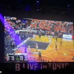 バスケコートが再現された東京会場では大型スクリーンと音、振動による没入感があった[写真]=B.LEAGUE