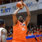 第3クォーターは開始早々から菊地祥平、竹内譲次が加点しリードを22点に。その後はやや追いあげられたが、終盤に竹内のジャンプショット、正中の3ポイントなどで再び突き放し、69-48で最終クォーターへ。