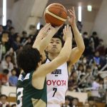 43-34で迎えた第3クォーターは、開始1分25秒に3点差まで詰め寄られるも、同2分37秒に田中のパスから菊地祥平が3ポイントをマーク。中盤はカークのダンク、竹内のバスケットカウント、安藤誓哉の3ポイントで一気に突き放し、終盤は田中、竹内、カークの連続得点で66-49と点差を広げた。