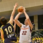 ロースコアとなった次の10分間は、開始2分18秒から辻、鎌田裕也のアウトサイドか決まり点差を2ケタに拡大。しかし、残り1分30秒から田臥勇太、ライアン・ロシターに決められ、36-29で試合を折り返した。