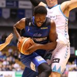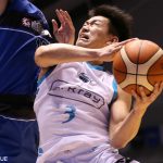 次の10分間は、残り4分41秒に永吉佑也のジャンプショットで同点に追いつくと、同3分42秒、片岡大晴が3ポイントを決めて逆転する。その後もスミスと片岡が得点を伸ばしたが、相手も譲らず40-39で前半を折り返した。