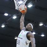 ダンクを決めるブラウン [写真]=B.LEAGUE