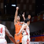 後半に入ると徐々に息を吹き返す。第3クォーター残り5分49秒に笹山貴哉、同4分40秒に安藤周人が3ポイントを沈め、同3分51秒に中東泰斗のアシストから再び笹山が3ポイントをマーク。一気に1ケタ点差まで迫ると、残り1分21秒から張本が5得点、大宮宏正が2得点を積みあげた。