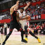 計23得点10リバウンドを挙げて奮闘したジャスティン・バーレル[写真]=B.LEAGUE