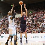試合は開始29秒にニック・ファジーカスの3ポイントで先制点を挙げると、次の攻撃では辻直人にも3ポイントが飛びだす。良いスタートを切ったかに見えたが、ジョシュア・スミス、昨季まで川崎に在籍していた晴山ケビンと永吉佑也に決められ追いかける展開に。それでも、10-16で迎えた残り3分8秒に谷口光貴の3ポイントが決まると、同2分31秒からは辻のスティールとアシストが光り連続8得点を奪って21-19で終えた。