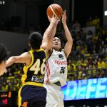ロースコアゲームとなった第3クォーターは、残り4分53秒から立て続けに失点し2点差とされる。しかし、同2分40秒に竹内譲次がオフェンスリバウンドから得点すると、ザック・バランスキー、馬場雄大が続いて盛り返し、49-43で同クォーターが終了。
