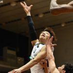 ハーフタイムが明けると、西宮の外国籍選手が本領を発揮。キャメロン・リドリーが体格を活かしてゴール下を制圧し、横浜はディフェンスで後手に回る。田渡凌が果敢に攻めて点差を縮めにいくが、リドリーに代わって入ったバーンズが外角シュートを連発。オンザコート1で194センチのバーンズが入ったことにより横浜はサイズで上回ったが、そのアドバンテージを活かしきれず、63-57と西宮のリードは6点に広がった。