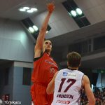 後半も激しい点取り合戦が繰り広げられ、小林大祐が奮起するも第3クォーターを終えて70-71となかなか主導権が奪えない。それでも、最後の10分間はエリック・ジェイコブセンの連続バスケットカウントが決まり序盤で一歩抜けだすと、中盤以降はジョシュ・ペッパーズの活躍で相手を突き放し、最終スコア103-95でハイスコアゲームをものにした。