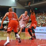 勝負の分かれ目は、第2クォーターにあった。持ち味の激しいディフェンスでリズムをつかむ川崎は相手にスコアを全く与えない。オフェンスでも縦にアタックすることで、エース、ニック・ファジーカスの周りにスペースができ、彼の良さが出てくる。どんな体勢でも確実にスコアを決めて点差を広げ、前半を38-32と6点リードで折り返した。