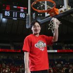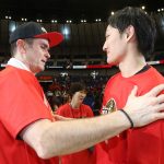 ファイナル後のセレモニーでは指揮官と喜びを分かち合った [写真]=B.LEAGUE