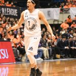篠山選手によって1月に行われたBリーグのオールスターゲームで発売前の『BLAZE NOVA』がお披露目された[写真]=B.LEAGUE