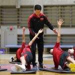 塩野 そのとおりです。現段階では他のスポーツなどにも通ずるようなアスリートとしての素養をまずしっかり身につけてもらいたいという考えの下、実際に体を動かして練習している1時間45分のうち、45分はバスケットボールを使わない、アスリートとしての基本を身につけてもらうトレーニングをしています。