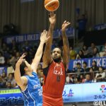 試合開始から点を取り合ったが、狩野祐介に3本の3ポイントを決められ、第1クォーターは21-25。続く第2クォーターは失点を14点にとどめて点差を詰めると、終了間際にレオ・ライオンズが3ポイントを沈めて2点リードで試合を折り返した。