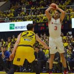 しかし、そう簡単に終わらないのがバスケットボール。ハーフタイムで目を覚ました栃木が一気に猛攻を仕掛ける。第3クォーターは歓喜の瞬間が次々と訪れ、アリーナが何度も揺れた。栃木らしい前からアグレッシブにディフェンスを仕掛けて流れをしっかりとつかむと、渡邉裕規の連続3ポイントシュートで完璧にスイッチが入り、その後も遠藤祐亮や比江島慎も同じように3ポイントシュートを沈めるなど一気に追いあげ。点差はあっという間に縮まり、第4クォーターにはゲームハイの18得点を獲得した比江島がゾーンに入り、試合終了残り8分で60-54と大逆転した。