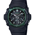 アナログとデジタル表示のコンビネーションAWG-M100Sをベースモデルに採用。ブラックをベースに、ベゼル部にグリーンのアルマイト加工を施し、新たなフィールドへ立ち向かう希望に満ちた心境を、春の訪れを予感させるカラーに重ね表現しました。