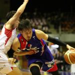 第1クォーターは遥天翼の12得点を含む計24得点を許したが、阿部友和が終了間際に3ポイントシュートを沈めて21-24。続く第2クォーター攻守が噛み合い始め、48-40で前半を終えた。