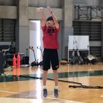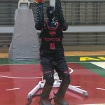 CUE3は昨シーズンの2月27日にA東京加入が発表された、狙ったシュートは外さない初代『CUE(キュー)』の進化版。初代は台座の上に乗っていたが、2代目『CUE2(キューツー)』はしっかりと2本足で自立し、シュートエリアもペイント内から3ポイントエリアに伸びた。CUE3のシュートエリアは、CUE2と同じ3ポイントライン付近。だが、通常のシュートに加え、より高い弧を描くシュートとバンクショットが打てるようになった。また、これまでは右手にボールをセットして、そのまま右手でシュートを放っていたが、CUE3はまず左手でボールを持ち、そこから右手に持ち替えてシュートを打つようになった。開発担当者の野見知弘氏は、この理由について「夢のまた夢の話ですけど、2020年のBリーグオールスターに(CUEが)出たいと思っています。1分の間に5カ所からシュートをしなくてはならないので、それを可能にするための要素技術を検討しているという感じです。これからも持ち方は変わってくると思います」と説明した。