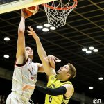 後半に入っても両チームともリングに嫌われる中、今試合最多32得点を決めたサイモンに10失点を許し、第3クォーターを終えて37-35とリードを2点に縮められた。最終クォーターはエグゼビア・ギブソンがペイントエリアから、熊谷尚也が外角からシュートを沈め、52-51でなんとか逃げ切った。