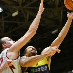 しかし、鵤誠司の得点で流れを断ちきると、終了間際には比江島が3ポイントを沈め、39-35で前半を終えた。