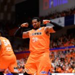 第3クォーターに入ると、ディフェンスから流れを呼びこむ。開始4分38秒にアレックス・カークの得点で、48-47と逆転に成功した。その後は拮抗した展開となるが、ミルコ・ビエリツァが終了のブザーと同時に3ポイントを沈め、59-55で最後の10分間へ。