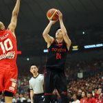 昨季王者のA東京は新潟アルビレックスBB、琉球ゴールデンキングスと地区優勝チームに勝利。安藤誓哉、馬場雄大、田中大貴、竹内譲次、アレックス・カークがスターティングファイブに名を連ねた。