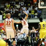 藤井 (ニック)ファジーカス選手からディフェンス(関野剛平)、かつゴール下付近にいたヘルプ(田渡修人)にも取られない、いい場所にパスが来ました。僕はディフェンスに腕をかけられていたので、オープンになっていた熊谷(尚也)選手にパスを出せませんでした。最悪フリースローを獲得できると思ってシュートを放ちました。