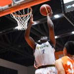 第3クォーターは序盤から横浜に攻勢を許す苦しい展開に。開始1分1秒時点で逆転されると、じりじりと引き離され、開始5分14秒時点で点差は10点に広がってしまう。しかし、そこから五十嵐やニック・パーキンズの得点で食らい付き、47-53と6点ビハインドでこのクォーターは終了。