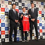 三遠の入団会見に臨んだ河村勇輝は「覚悟を持って臨みたい」とプロとしての決意を語る