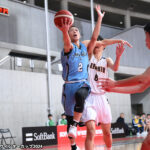 この試合、前半から22得点を挙げてオフェンスを引っ張ったのは2年生の金山颯。「色摩コーチからもしっかりシュートを狙っていけと言われていました」と明かした背番号2は、最終的にはゲームハイとなる38得点を稼いだ。