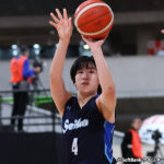第1クォーターは、初のベスト4入りを果たした精華女子ペース。身長189センチのアキンデーレ タイウォ イダヤットがファウルトラブルとなるも堅守で粘り、下川蒼乃、米森奈々心が立て続けに3ポイントを成功。絶対女王を相手に精華女子が27得点と堂々たる試合運びでリードした。