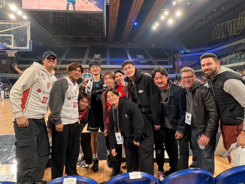 2月18日、B1千葉ジェッツの選手やコーチが、B3リーグ第21節の東京ユナイテッドバスケットボールクラブvsヴィアティン三重が行われた有明アリーナにかけつけ、東京Uに期限付き移籍したトビンマーカス海舟にエールを送った。