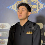 桃園戦後の取材に応じる琉球の植松義也[写真]=バスケットボールキング