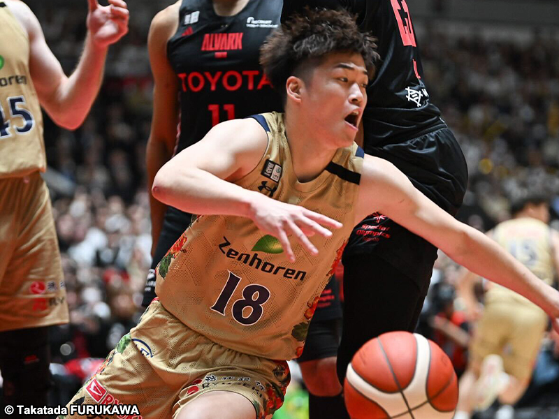 3月15日、国立代々木競技場第一体育館で『第100回天皇杯 全日本バスケットボール選手権大会』決勝が行われ、琉球ゴールデンキングスがアルバルク東京を60-49で下し初優勝。ベストファイブに選出された脇真大は試合終了後、「いや、僕?って思いましたけど、賞をもらえたのはうれしく思っています」と喜びを口にした。