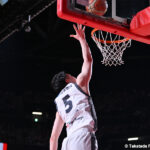 今年1月に東山高校から電撃プロ契約を発表した有望株は、ホームのLaLa arena TOKYO-BAY(ららアリーナ)で行われた「りそなグループ B.LEAGUE 2024-25 SEASON」B1第27節・越谷アルファーズ戦でベンチスタート。第1クォーター途中から富樫勇樹に代わって投入され、いきなりミドルジャンパーを決めて初得点を挙げると、その後も果敢にアタックする姿勢を披露。オフェンスリバウンドにも絡むと、同終盤には速攻をフェイダウェイで締めくくり加点するなど、冷静かつエネルギッシュなプレーでコートを駆け回った。