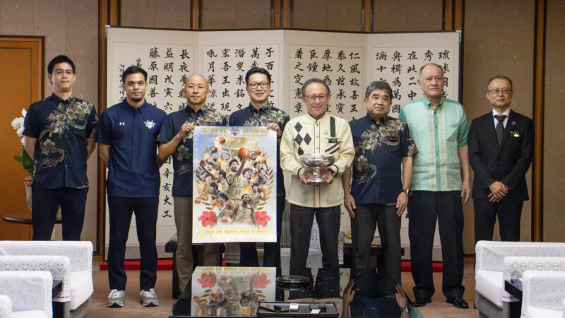 B1リーグ戦では西地区首位を走り、前日9日に「りそなグループ B.LEAGUE CHAMPIONSHIP 2024-25」の出場権を獲得。表見訪問した10日は、玉城知事や多くの職員から祝福の言葉を受けた。