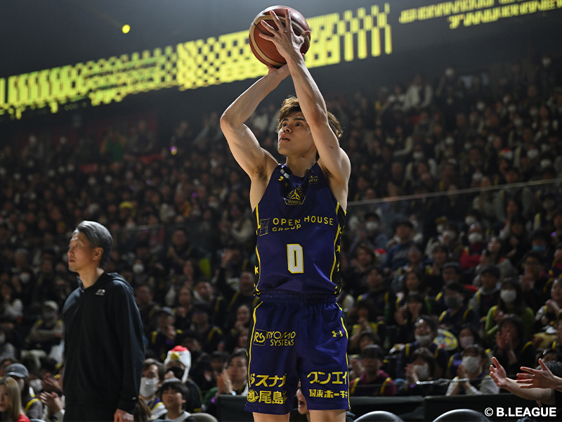 試合前時点で通算5989得点としていた藤井。第2クォーター残り3分5秒に右45度でボールを受けると、スクリーンを使いディフェンスを交わしプルアップ3ポイントを沈め、この試合11得点目を記録。個人通算6000得点の節目に到達した。