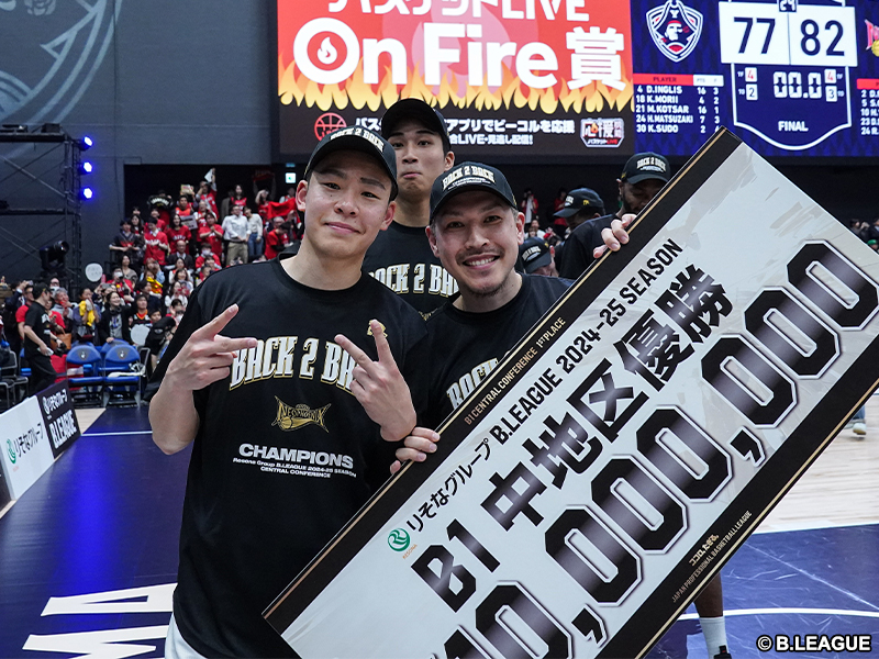 中地区優勝に王手をかけながら足踏みが続いていた三遠ネオフェニックスは、敵地で横浜ビー・コルセアーズから逆転勝利を挙げ、2年連続の地区優勝を決めた。第3クォーター終了時点で5点ビハインドの苦しい試合運びだったが、第4クォーターに吉井裕鷹、津屋一球、大浦颯太ら日本代表選手の連続ポイントでひっくり返し、82-77で競り勝った。大浦は3ポイント4本を含む21得点の活躍でチームの連敗ストップに貢献した。