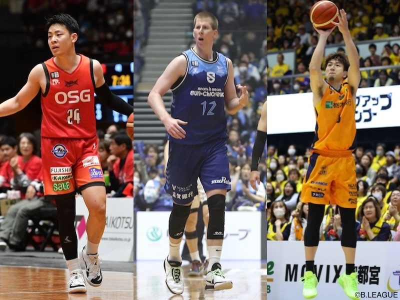2021-22シーズンから42.0パーセント、43.4パーセント、44.0パーセントと成長を続ける比江島慎(宇都宮)がキャリアハイ更新間近。辻直人(群馬)、田口成浩(秋田)といったベテランシューターもトップ3に入った。得点ランキンング1位のモータムは6位にランクイン。インサイドだけではなく、アウトサイドでも強さを見せた。