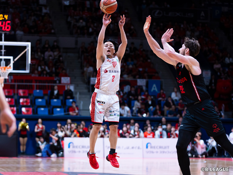 続く、第2クォーターでは途中出場の富樫勇樹が5本の3ポイントを含む16得点と大爆発。セバスチャン・サイズに得点を許すも、着々と得点を重ねて50―28と22点リードで試合を折り返した。