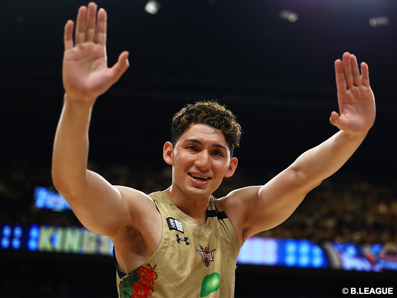 現在26歳の植松は、190センチ90キロのスモールフォワード兼パワーフォワード。桐光学園高校、明治大学を経て、2021年1月に特別指定選手としてライジングゼファー福岡に加入し、2021-22シーズンに選手契約を締結した。琉球で活動した翌シーズンは2022年11月に練習生から選手に“昇格”。なかなか出番に恵まれなかったが、在籍3年目の今シーズンは自己最多となるリーグ戦48試合に途中出場し、1試合平均4分30秒のプレータイムで1.0得点0.5リバウンドを記録。外国籍選手の出場に制限があった東アジアスーパーリーグ(EASL)では攻守に流れを呼び込むプレーを披露していた。