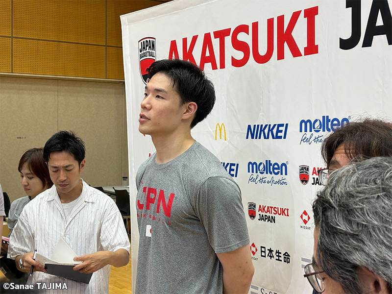 冒頭で練習メニューの幅広さについて尋ねられた馬場は、比江島慎(宇都宮ブレックス)の不在がその根底にあると説明。独特なドライブやステップで敵陣に攻め込んでいたベテランの大会参加が不透明ということもあり、新たな“クリエイター”をチームとして模索しているという。
