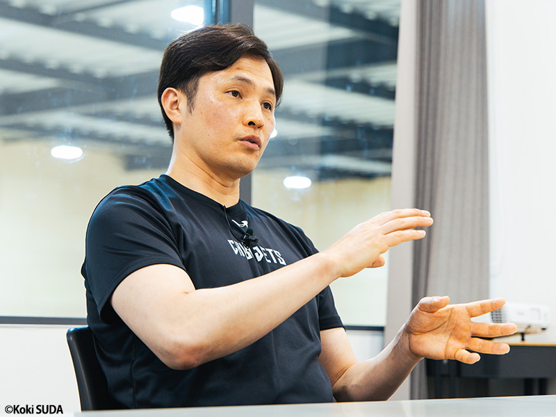 千葉ジェッツには選手のパフォーマンス向上のため、目的別にフィジカルコンディションを担当するスペシャリストが総勢7名いる。そのなかで、コンディショニングの方向性を総括的に決める役割を担っているのが吉田修久スポーツ・パフォーマンス・ディレクター(SPD)だ。※5月28日に2024-25シーズンでの契約満了がリリースされた